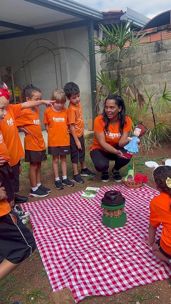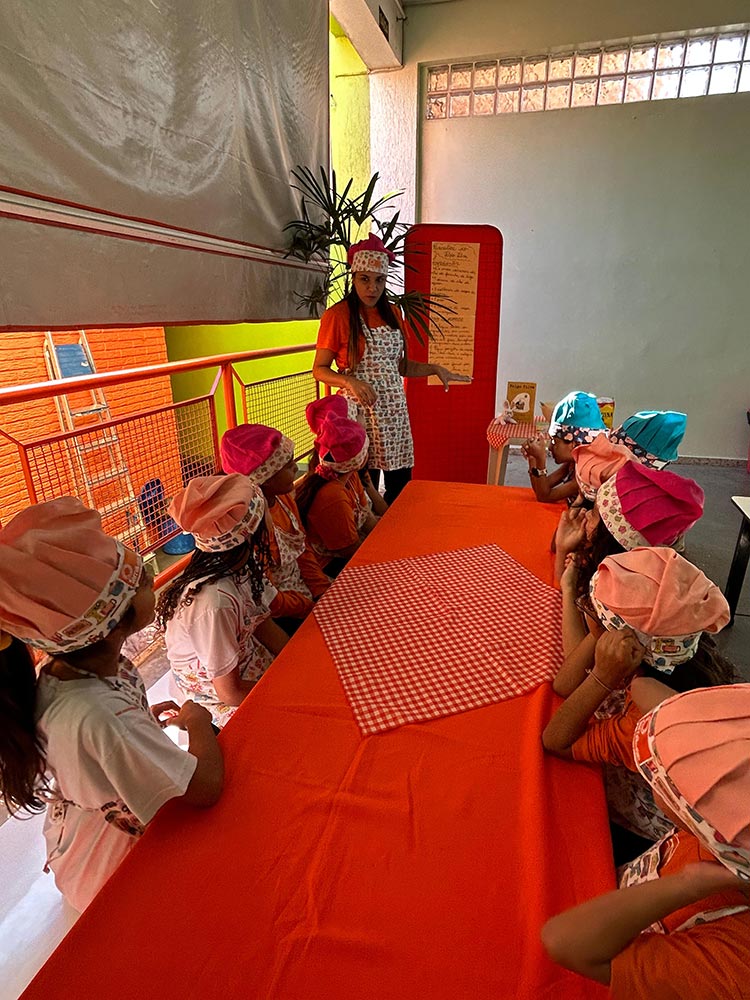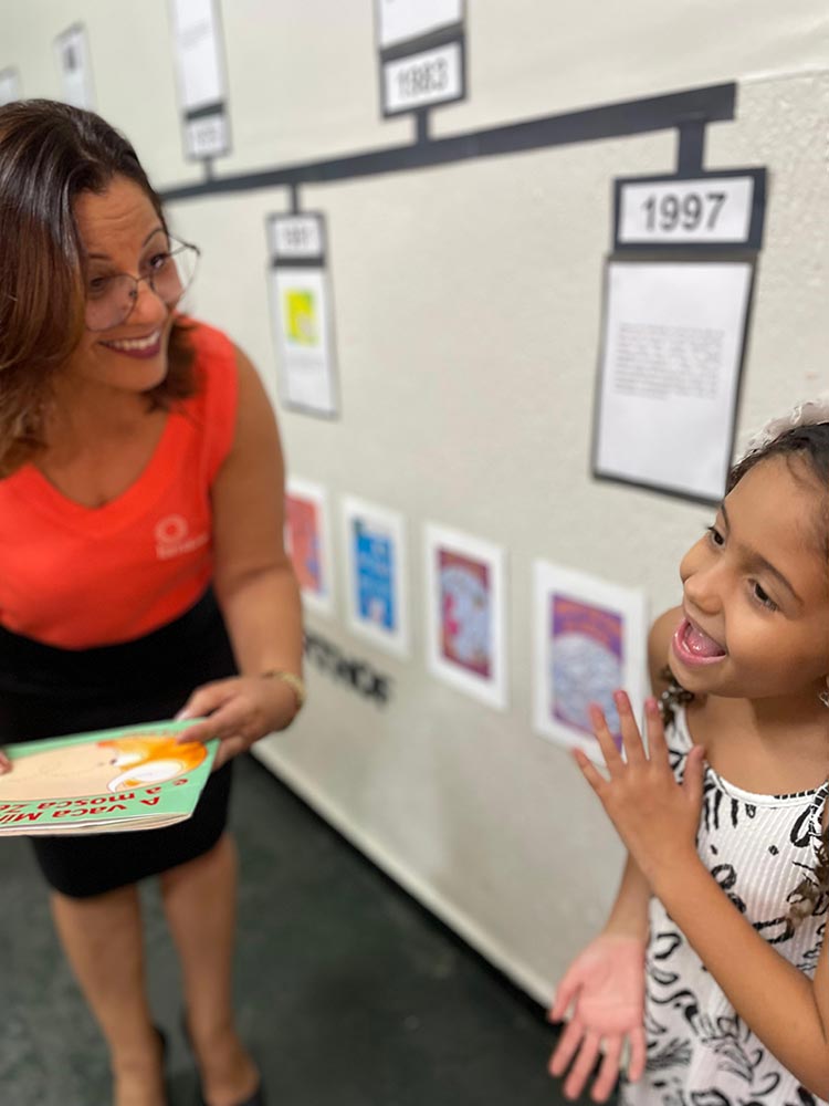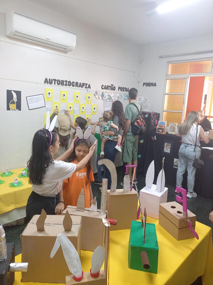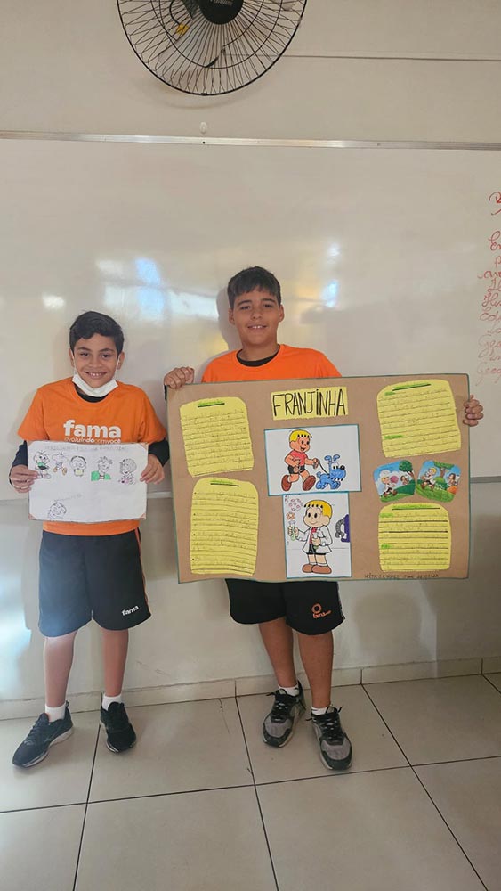 Cada turma mergulhou na vida e obra de um autor ou autora renomada, explorando sua trajetória, valores e contribuições para a literatura. Tivemos representações incríveis de escritores como Alaíde Lisboa, Sylvia Orthof, Ruth Rocha, Eva Furnari, Ana Maria Machado, Flávia Lins e Maurício de Sousa.